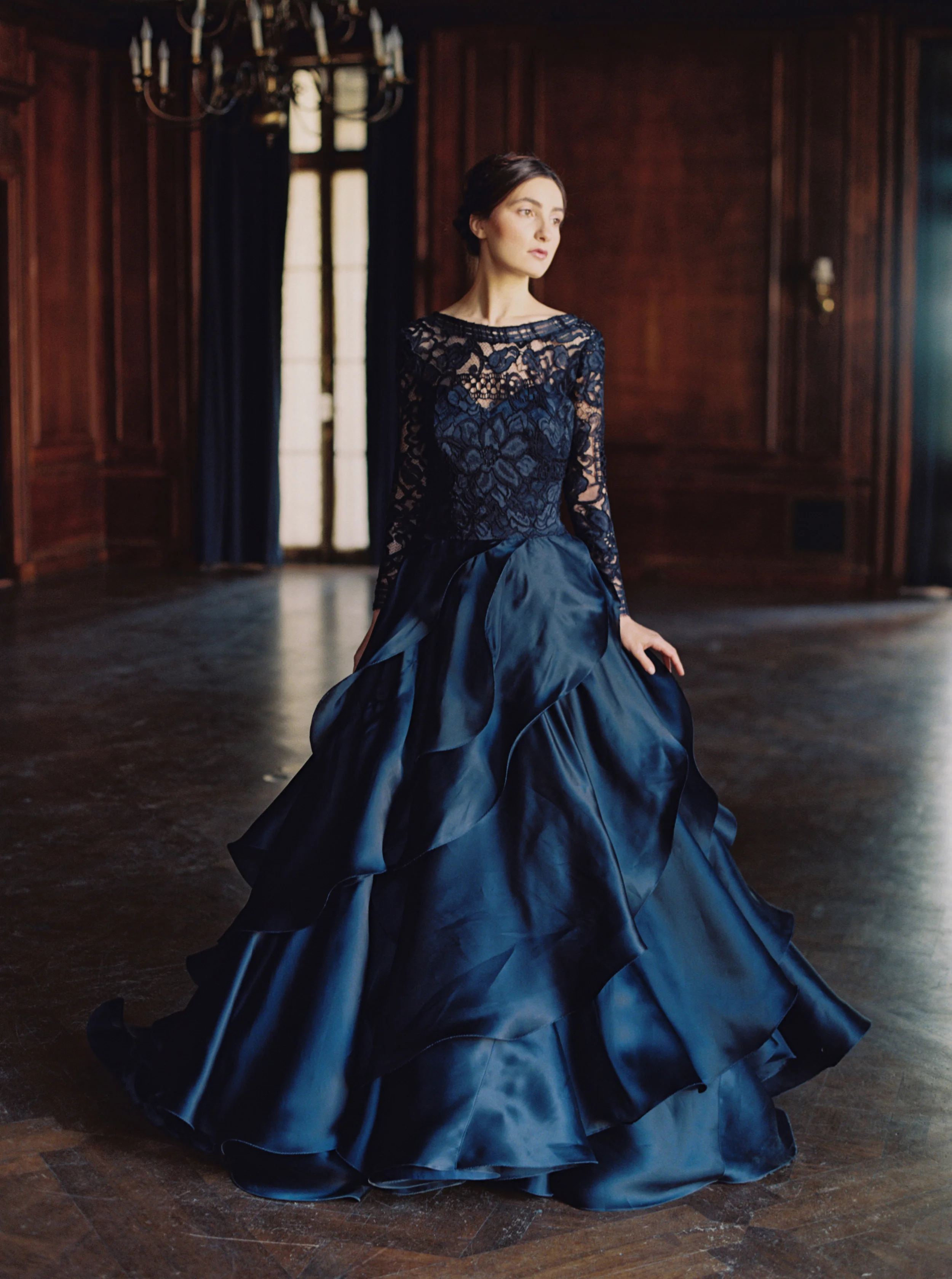 At the end of the summer, we had the chance to pop into Maddison Row for the Sareh Nouri trunk show and the dreaminess did not disappoint. The Iranian born designer graduated from George Mason University with a degree in graphic design and as her 2009 nuptials approached, she struggled to find the perfect gown. Putting to use her knowledge of patterns and layouts, thanks to her professional design success, she was able to create the gown of her dreams…and thank goodness for all of us she did! Much like her previous collections, the 2016 Sareh Nouri Collection is bound to take your breath away. It’s full of intricate details, swoon-worthy French lace and mesmerizing Italian silk. So, dive in and check out a few of our dazzling favorites below. I'm quite certain you'll fall head-over-heels (just like we did!) and just in case you were wondering, yes, the navy gown is as show-stopping in person as you might imagine...