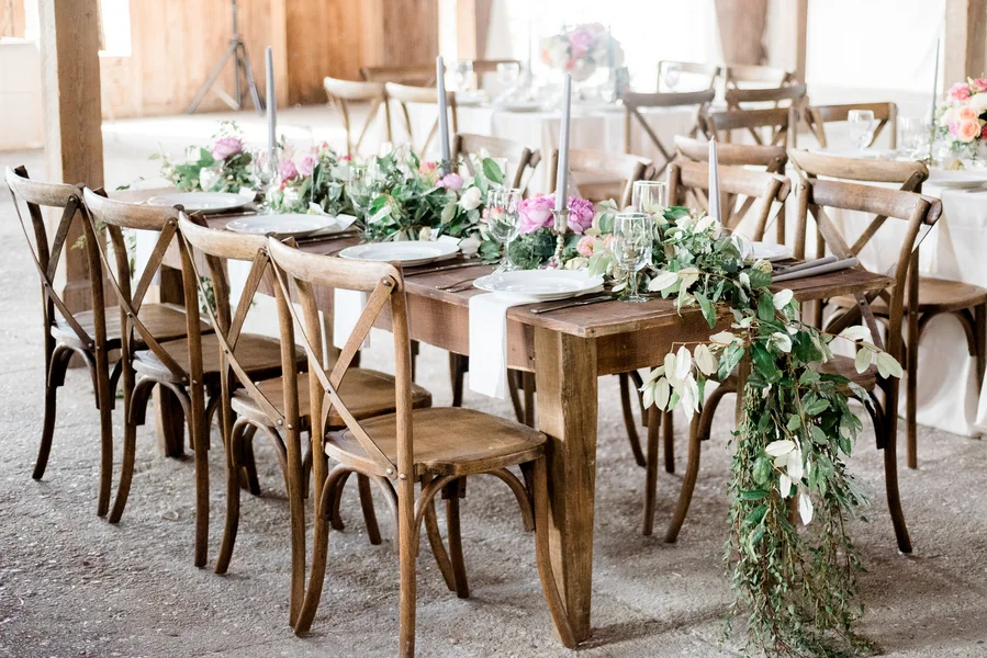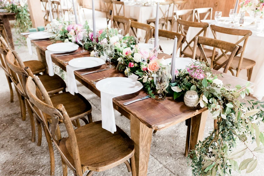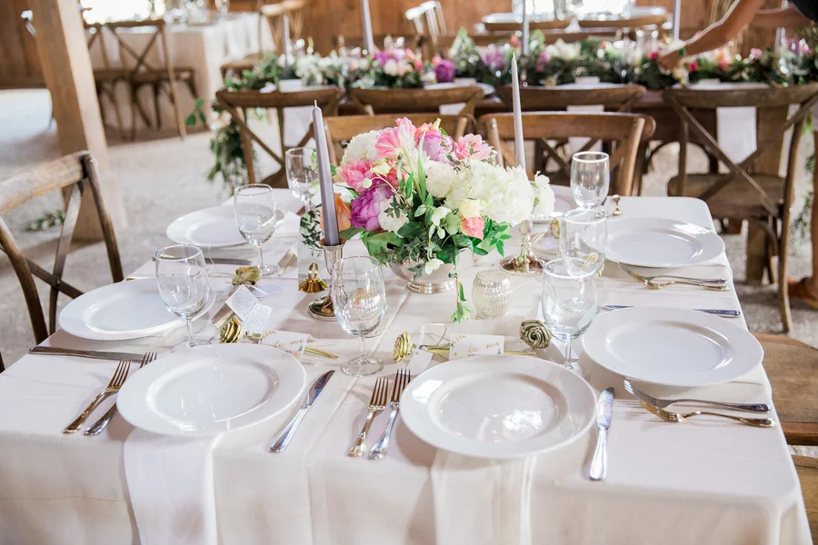 If you want a little burst of sunshine on this cold March day then we suggest you take a peek at Caitlin + Bradley's cheerful Boone Hall Plantation wedding captured by One Life Photography. Their ceremony took place in front of the Main House where Caitlin strolled down the aisle in a romantic blush dress and glittery heels. Ashlynn of Duvall Events designed a charming reception at The Cotton Dock where rustic farm tables were the canvas for Springtime blooms from Charleston Stems which were delicately tucked into table runners of fragrant greenery. Chandeliers hung from the beams as guests dined on Lowcountry cuisine from Cru Catering and a dessert bar from WildFlour Pastry.