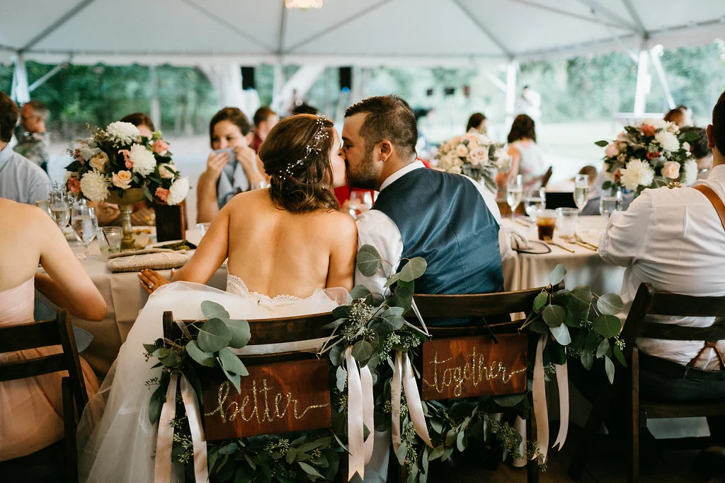 We're heading into the weekend with an effortless Wingate Plantation wedding just outside of Charleston, South Carolina from the team at Pure Luxe Bride. Bride Katherine donned a dreamy Tara Keely dress paired with the perfectly adorned braid from Canary Rock Salon for her outdoor ceremony. The couple exchanged vows the way every Lowcountry bride imagines, in front of their nearest and dearest, under the shade of expansive oak tree on Johns Island - and with one adorable flower girl on hand! They celebrated with tasty bites from Mosaic Catering and beverages from Spike. Tables were set cream linens, soft blue napkins, wooden table numbers and topped with romantic centerpieces of peach and pink roses and white chrysanthemums designed by Wildflowers Inc.. Thanks to Monika Gauthier Photography for documenting their big day.
