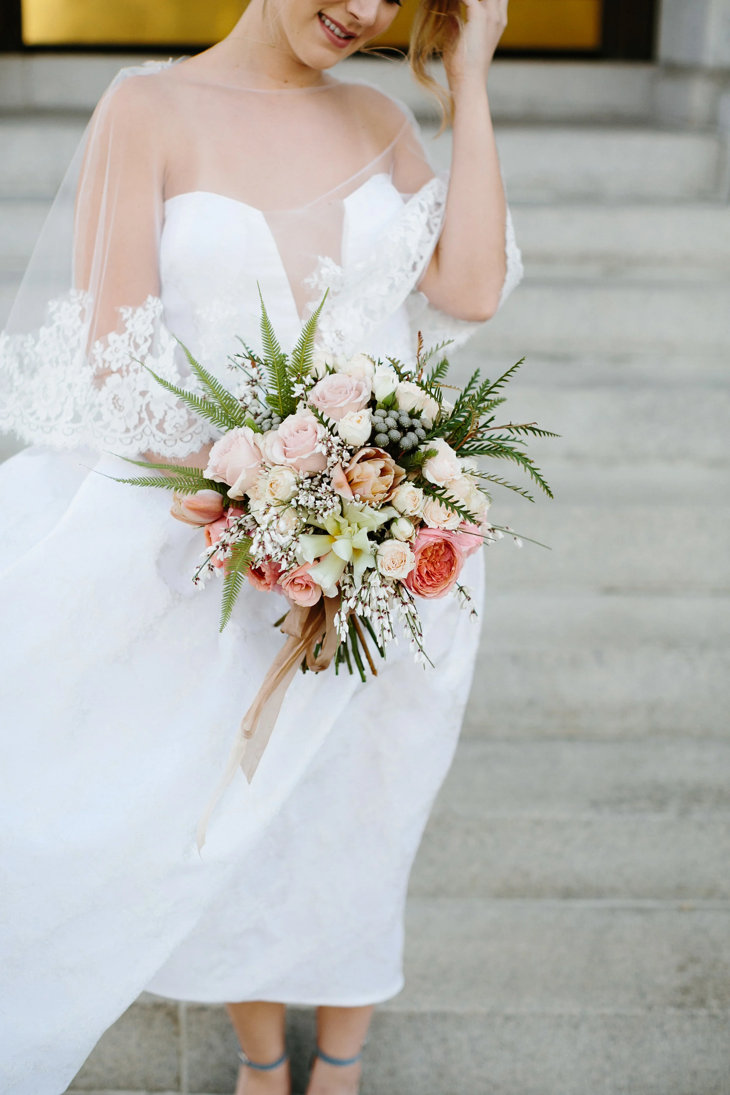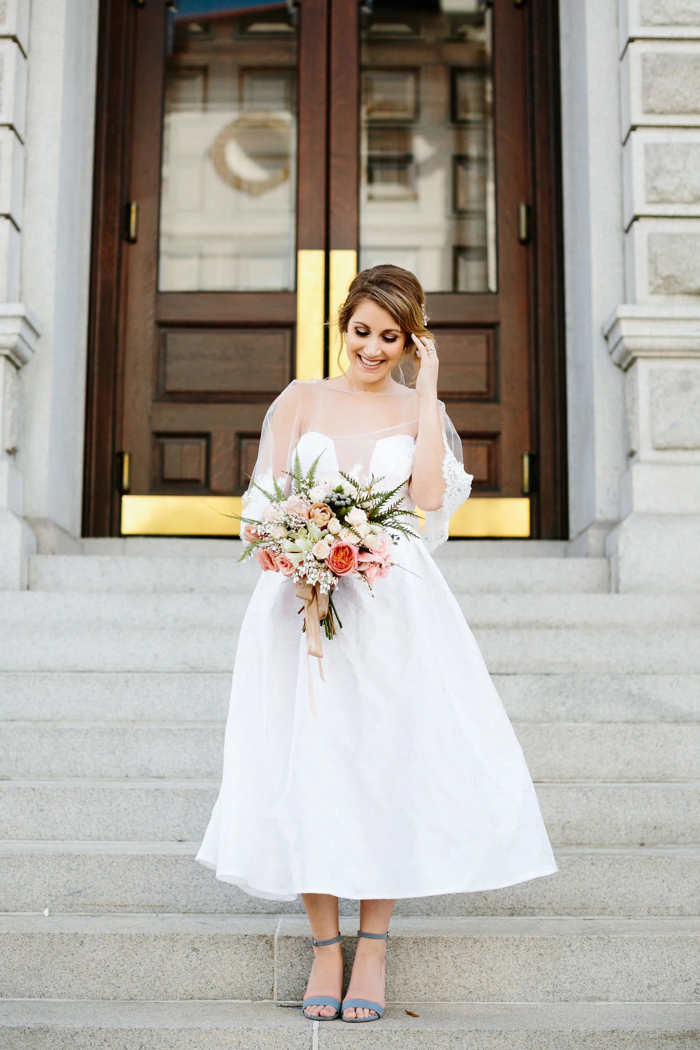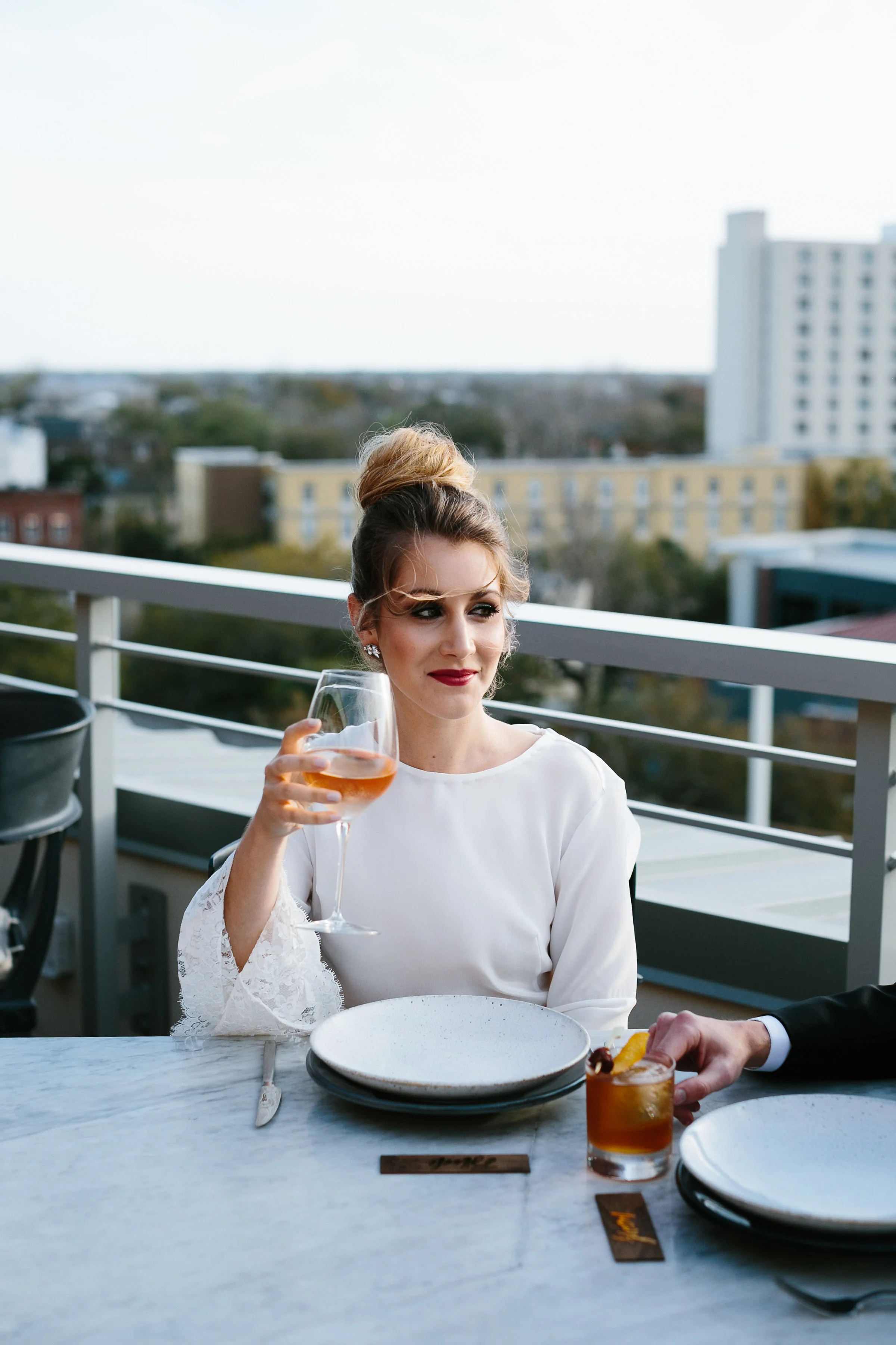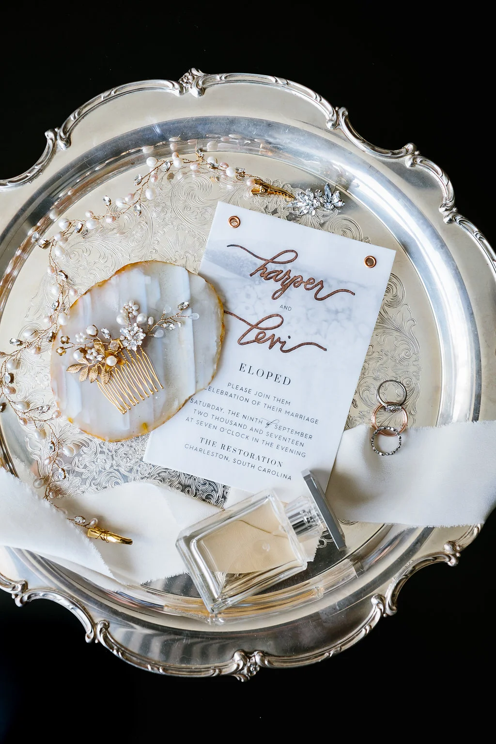 A big guest list and formal wedding aren't everyone's cup of tea and Cayleigh Hopkins of The Petal Report is here to show us how an intimate elopement (party of two!) can deliver the same stylish punch we all love, starting with these sleek paper goods from Britt Bates. The inspiration behind the shoot was to follow two soon-to-be Mr. & Mrs. as they prepped for their meaningful courthouse ceremony in Downtown Charleston, SC. The day started at the luxurious Restoration Hotel where the couple enjoyed their morning coffee before picking out their wedding bands at Croghan's Jewel Box. The stunning bride suited up in a custom Emily Kotarski original with Emma Katzka accessories while the groom wore a K. Cooper Ray tuxedo from M. Dumas & Sons. Dressed to the nines, they toured the streets of the Holy City before exchanging vows at the courthouse. As the sun began to set, the couple enjoyed their first dinner as husband and wife while soaking in beautiful rooftop views. Thanks to Elizabeth Ervin for documenting all the details
