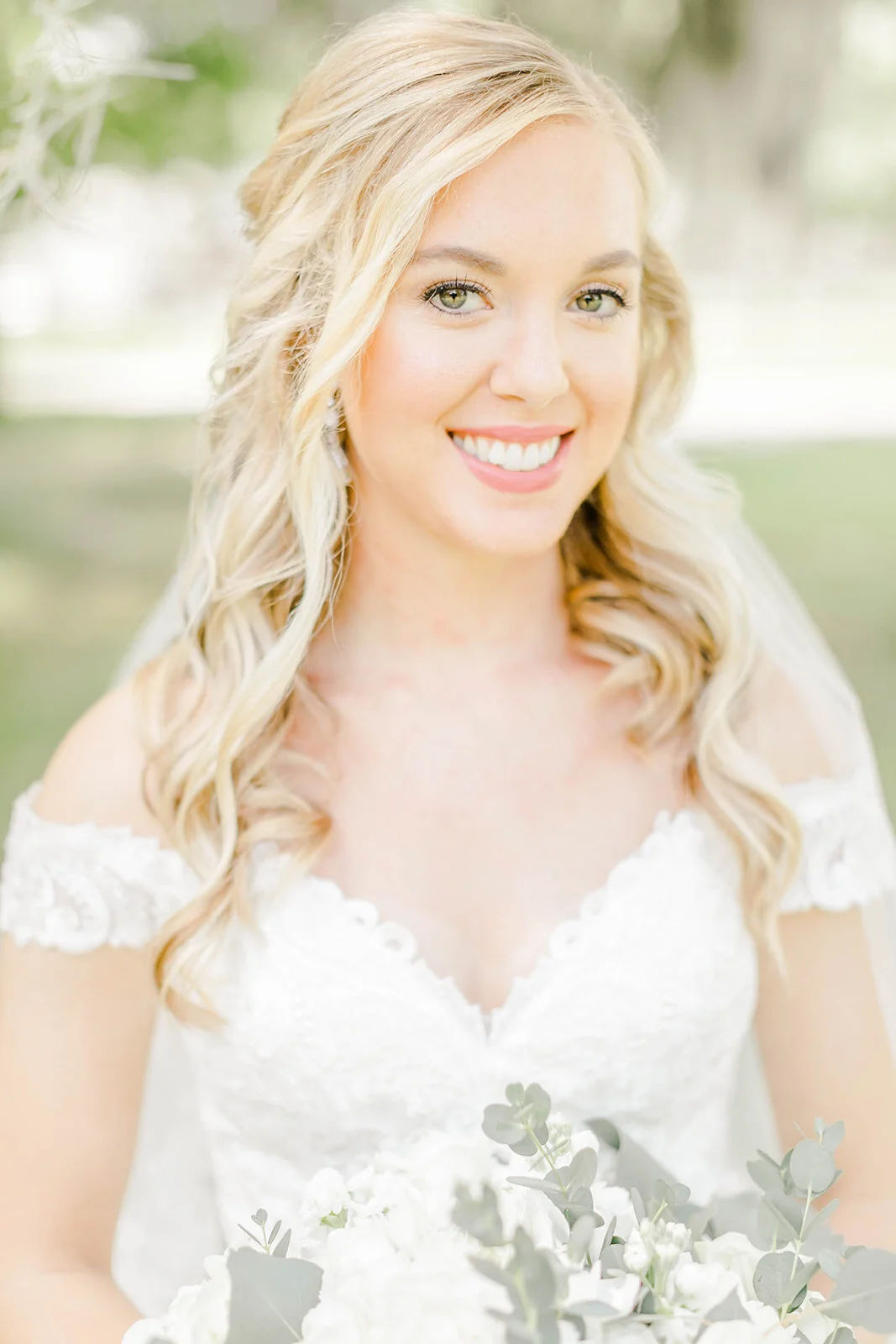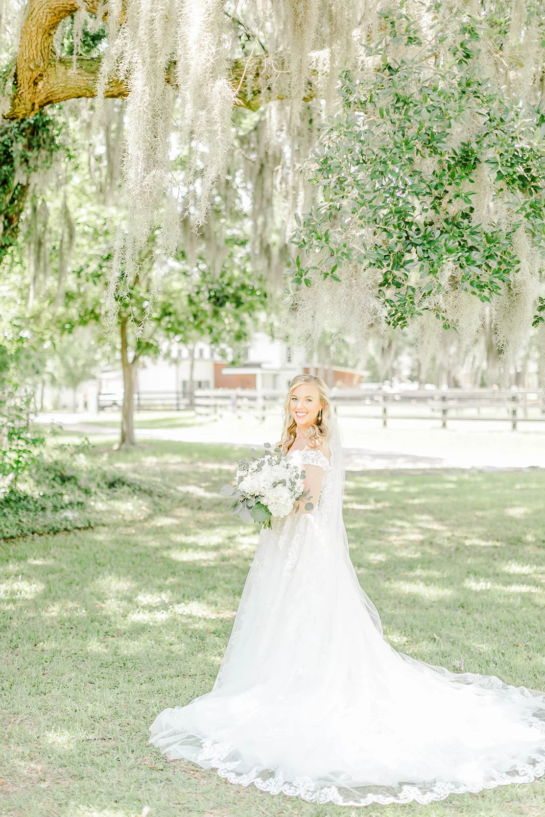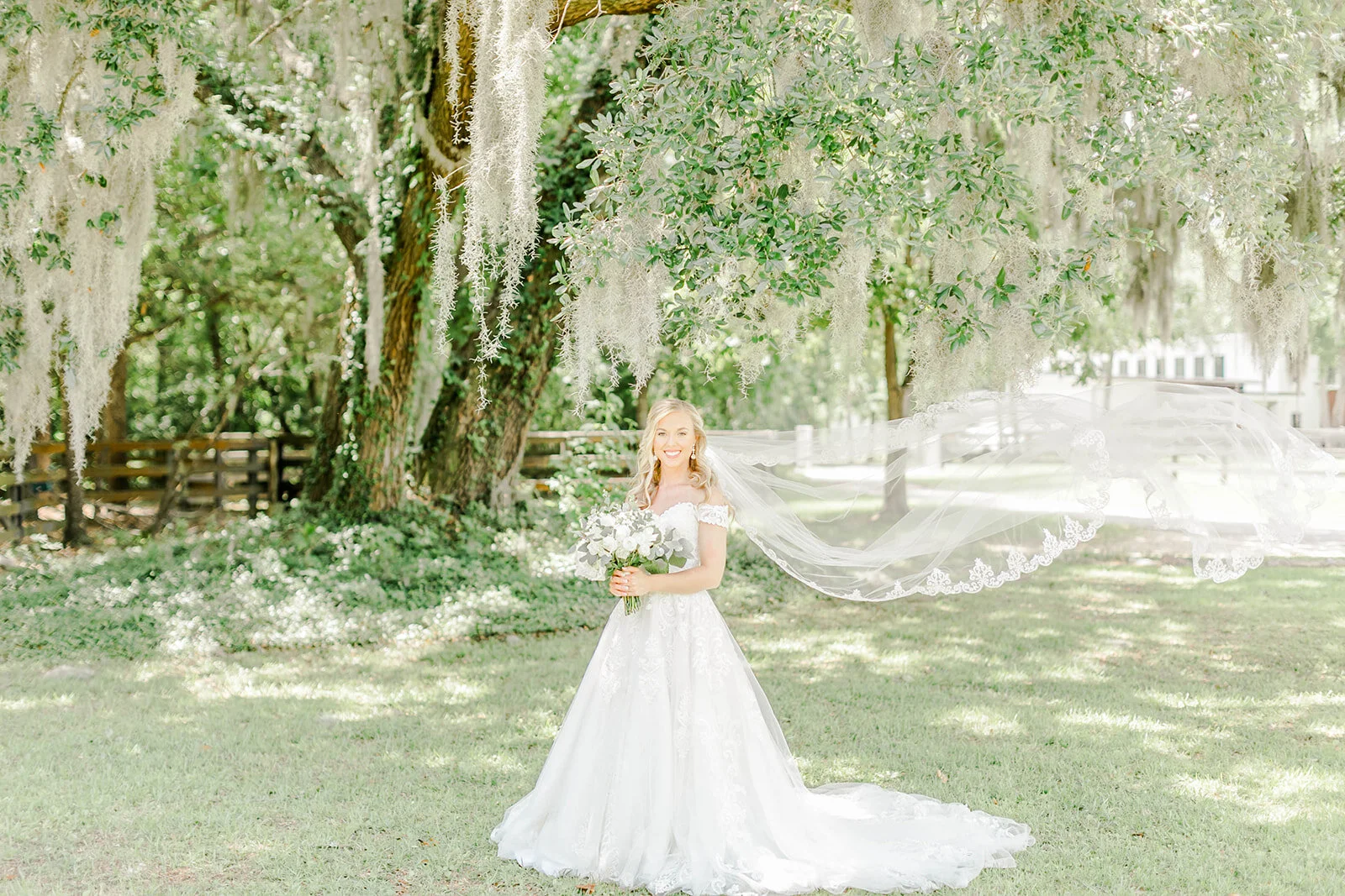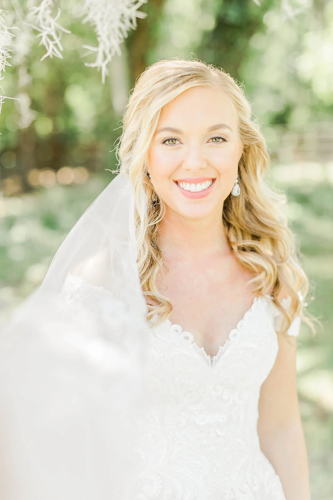 Venue: Pepper Plantation ll Photographer: Emily Veinberg Photography ll Gown & Veil: Bridals by Jodi ll Hair & Makeup: Lashes and Lace ll Florist: Charleston Blooms