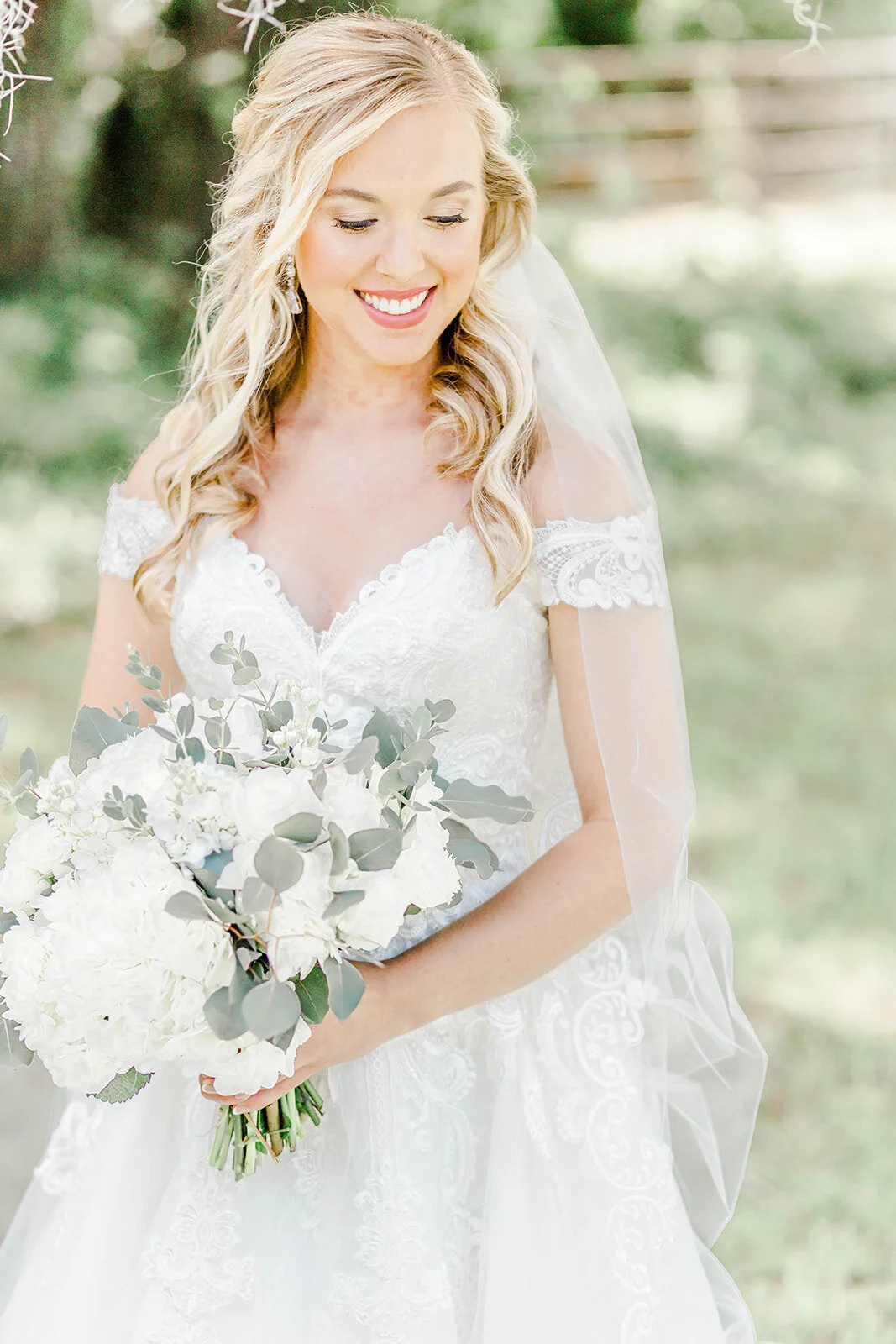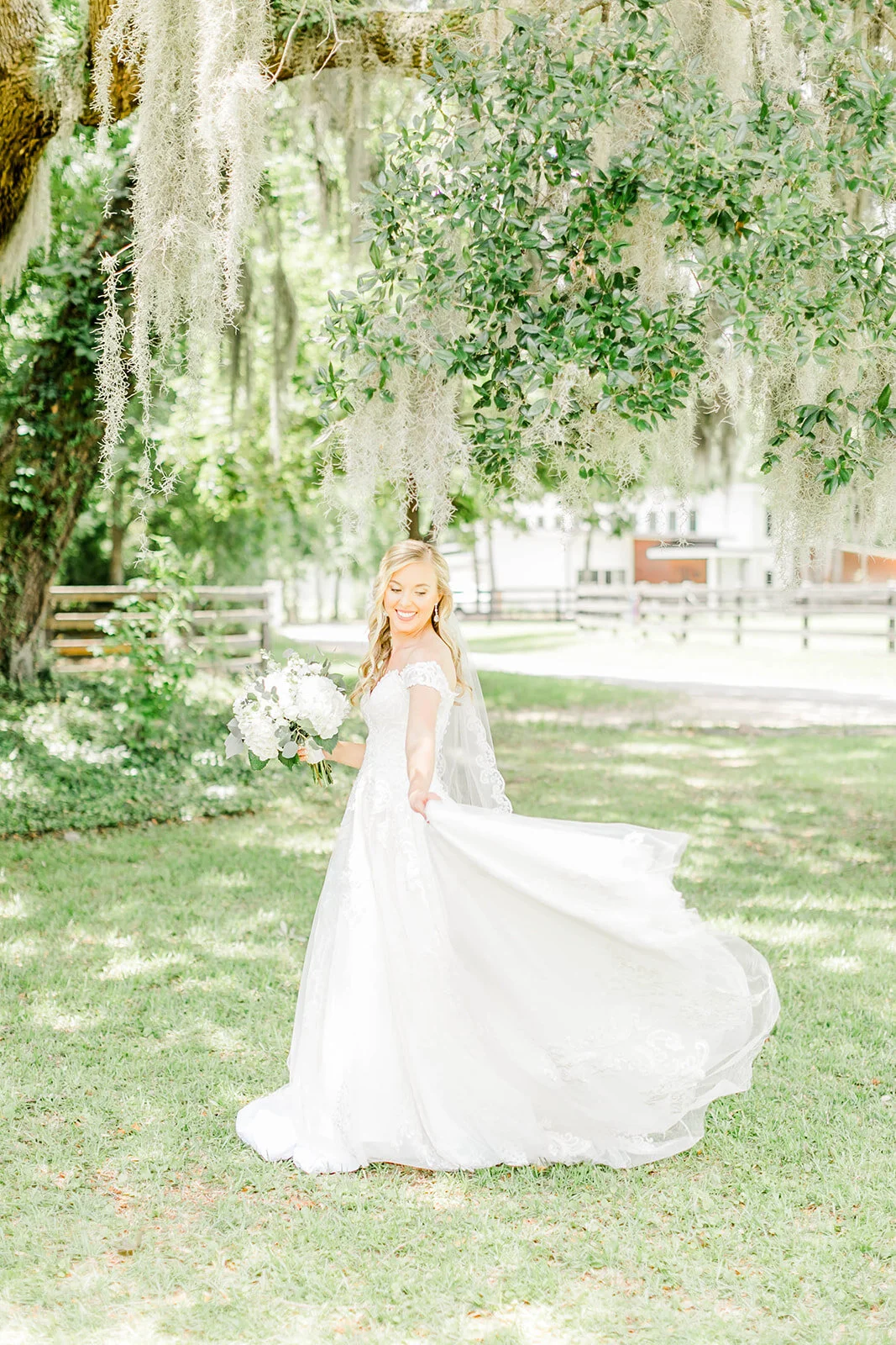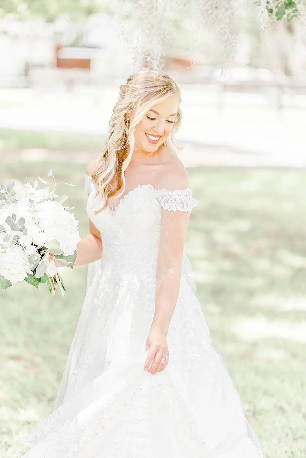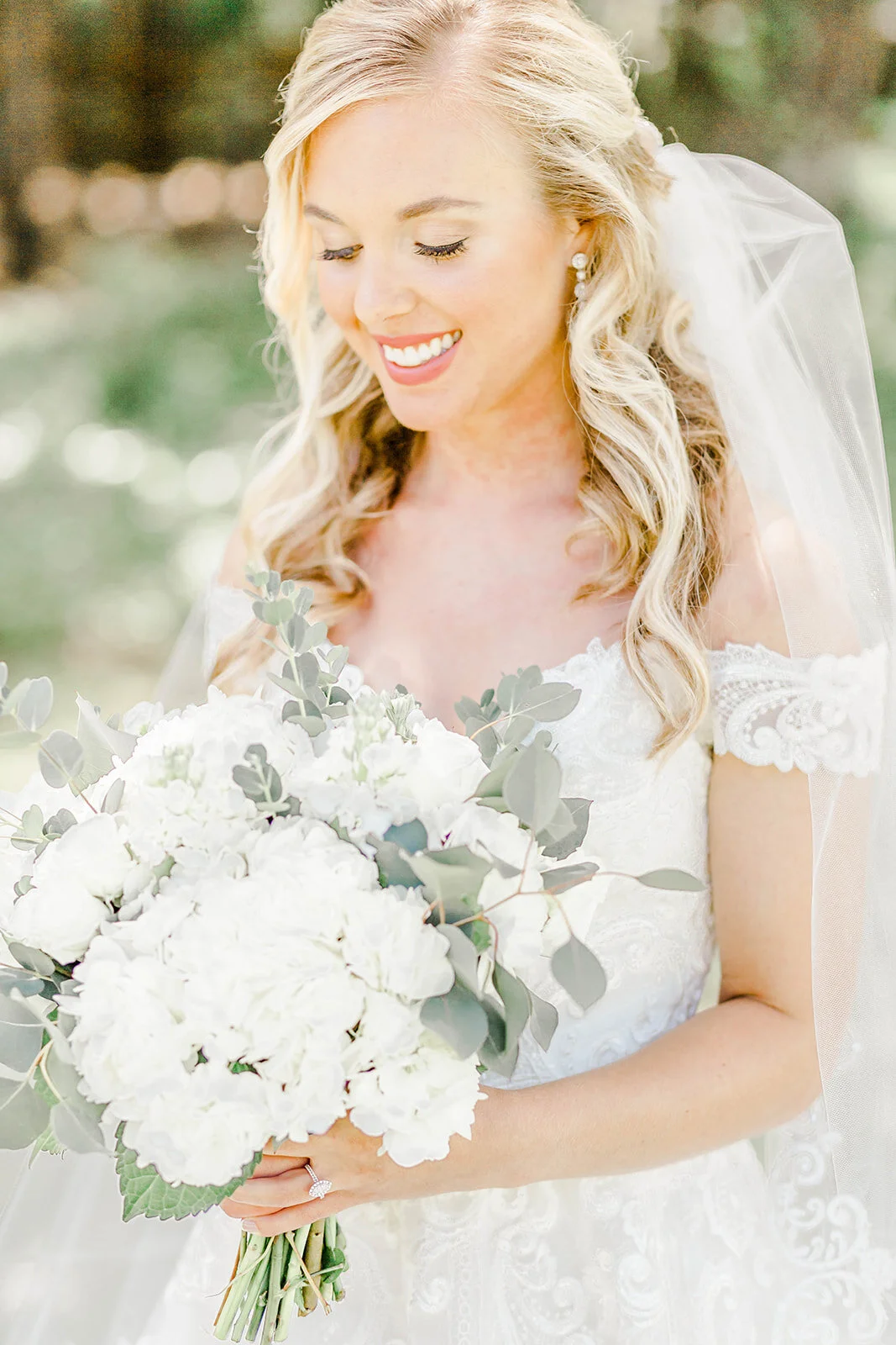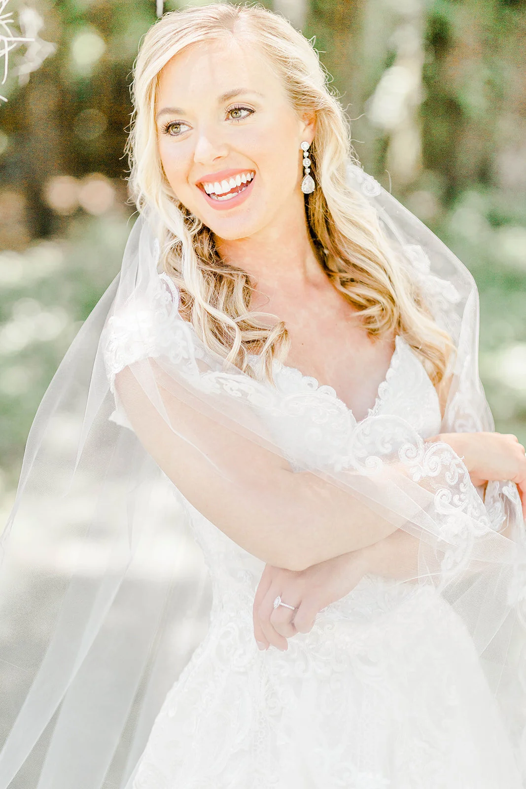 Venue: Pepper Plantation ll Photographer: Emily Veinberg Photography ll Gown & Veil: Bridals by Jodi ll Hair & Makeup: Lashes and Lace ll Florist: Charleston Blooms