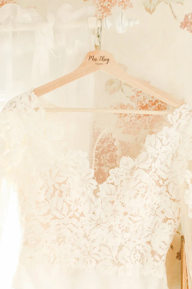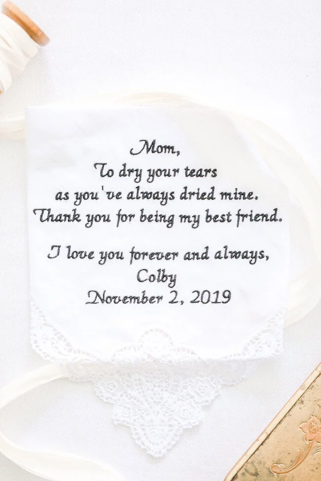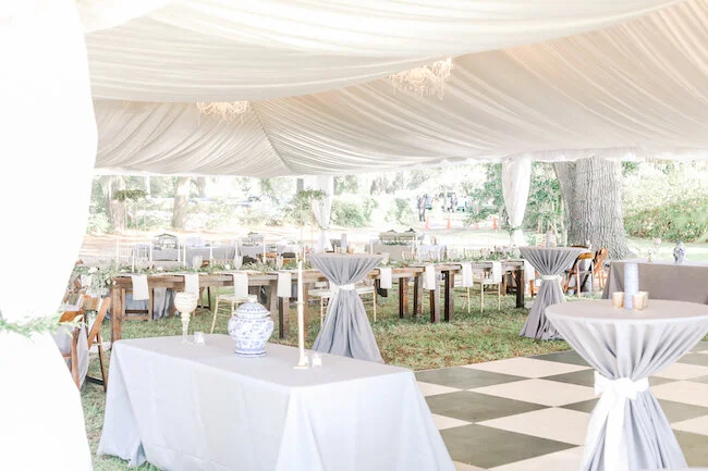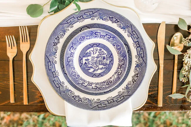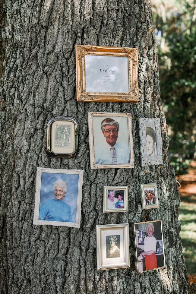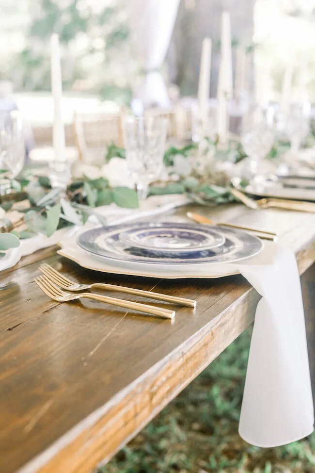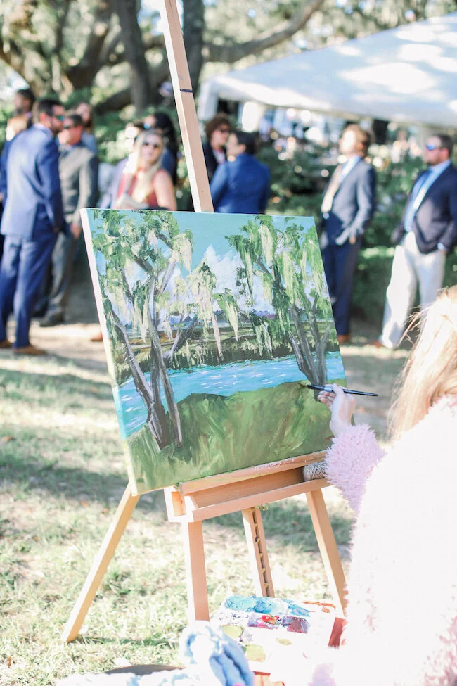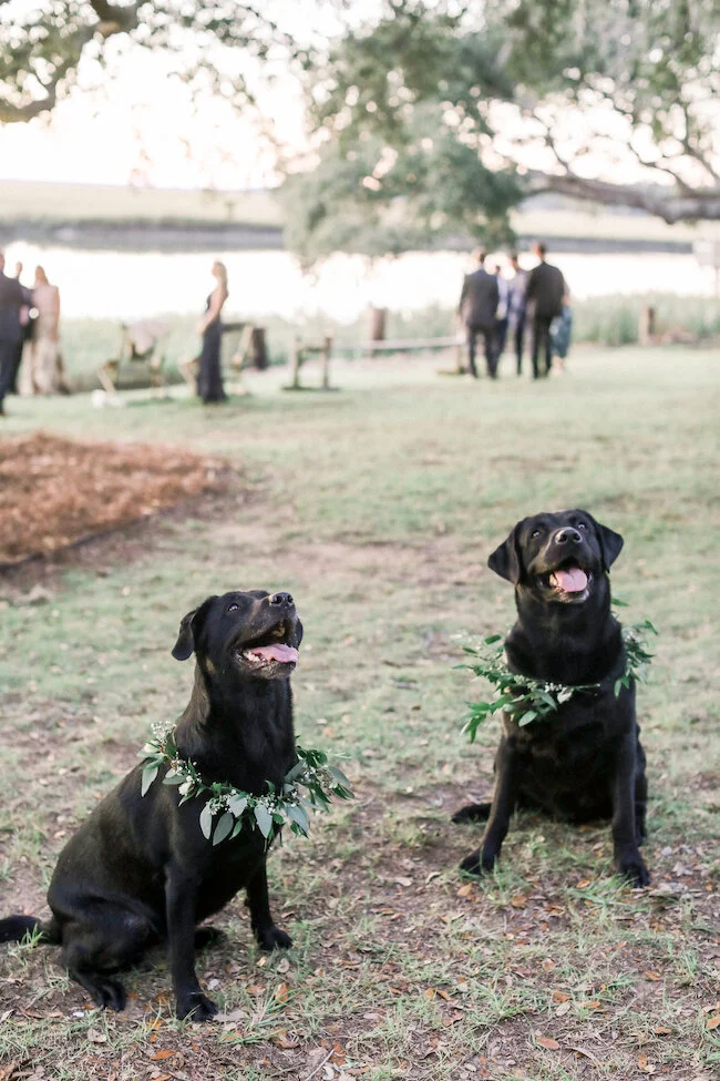 From the planner: Colby + Chase wanted to let the beauty of the waterfront venue speak for itself. Their day was simple, beautiful, and a dang good time! They wanted to focus on their guests having an absolute blast in celebrating. They incorporated personal details, like using the bride's family china for the head table, and having a photo memorial set up in a tree to honor those who were there in spirit. They had a live painting during the ceremony, brought their dogs to the big day, and booked an amazing band (Tru Sol Band) that kept the party going all night long!