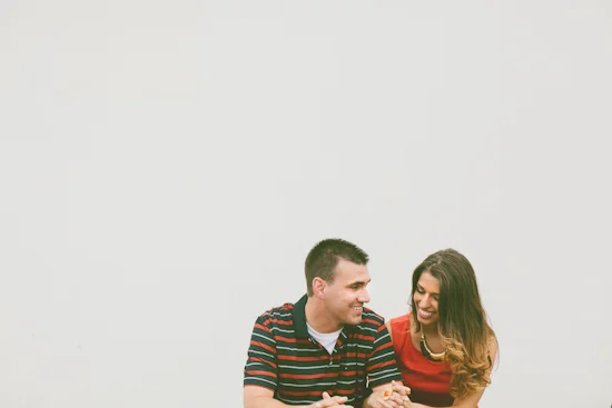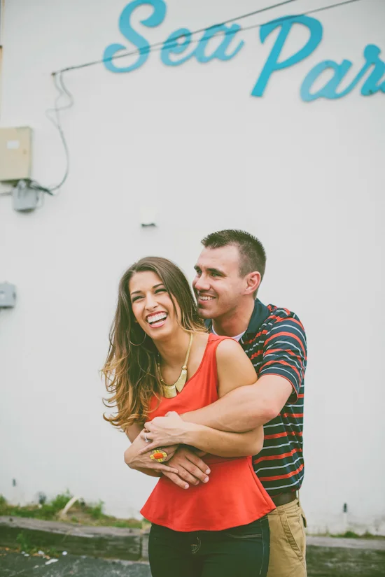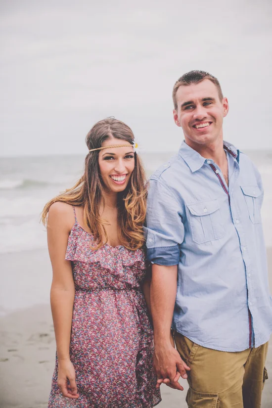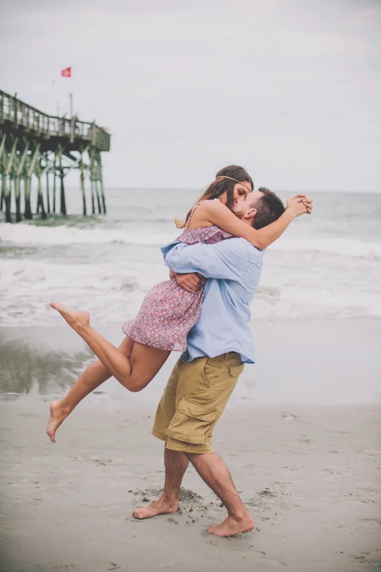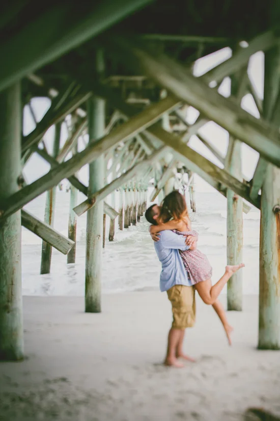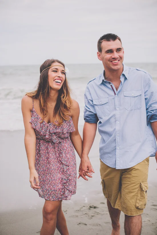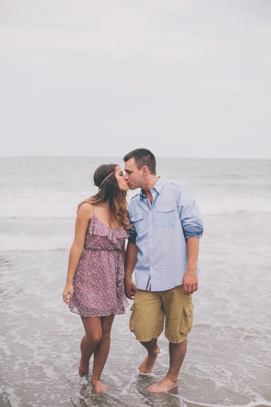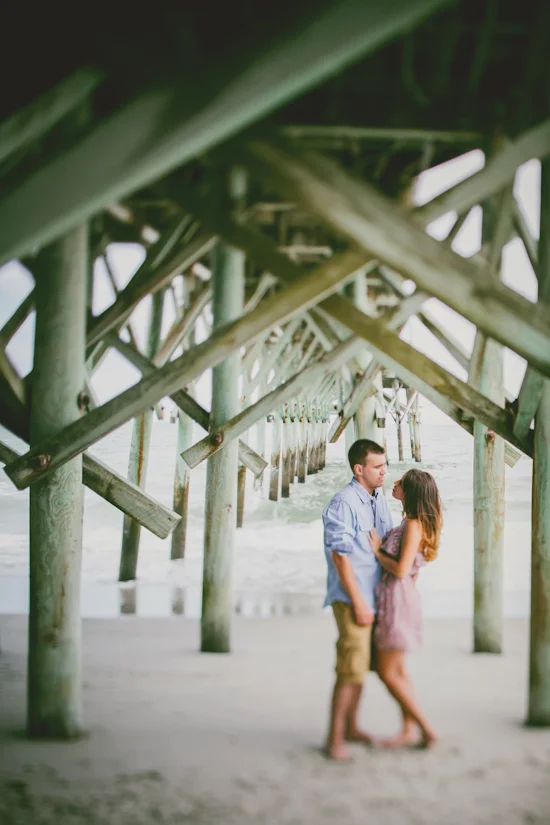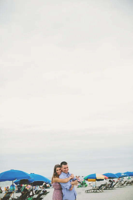 I about died when I first saw Amanda + Jonathan'sMyrtle Beach wedding engagement session from Angela Cox Photography. The minute I saw first saw this couple, I shot Angela an email and asked (Okay, maybe I begged and pleaded!) if I could share it on A Lowcountry Wedding because I just KNEW ya'll would love it! The afternoon got started under the neon lights of the arcade where they tried their hand at skeeball and even chatted it up with the Lucky Lady! Amanda is just stunning and along with her beautiful smile, she dazzled in a red top, jeans and some killer shoes. Then, they kicked it over to the beach for some casual pictures with their toes in the sand...Don't you just love it :)