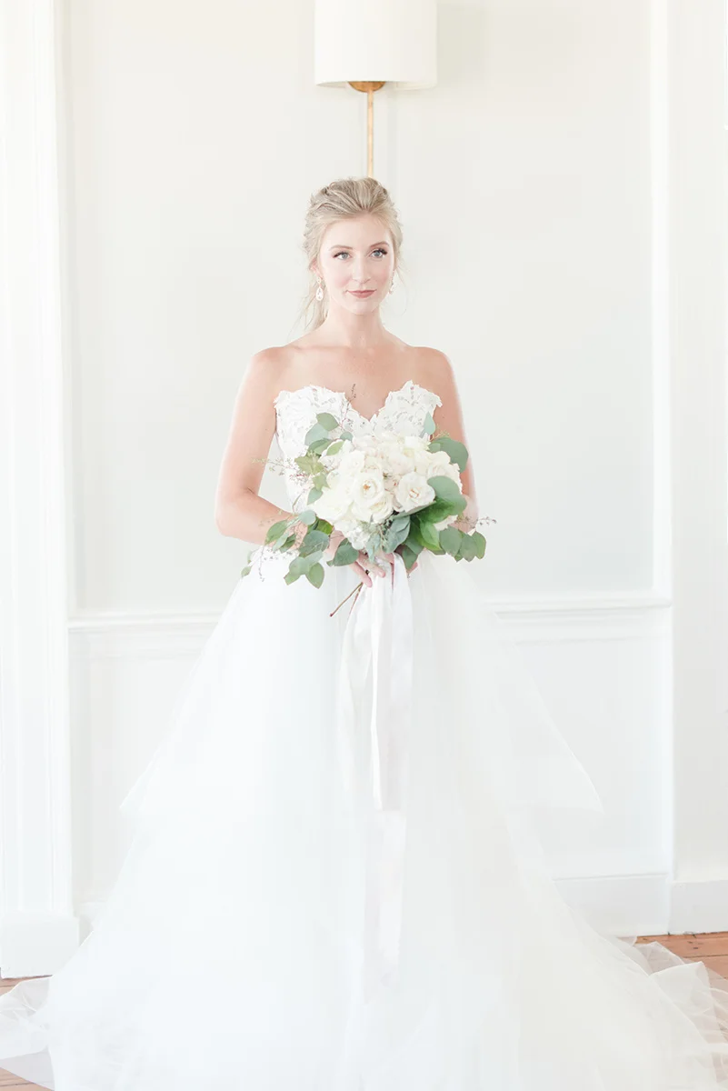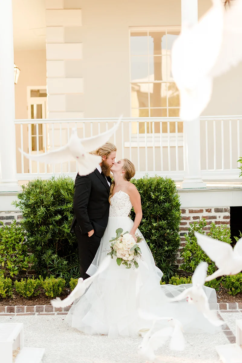 Photography: Candi Leonard Photography ll Planning & Design: Heather Benge Events ll Venue: Gadsden House ll Flowers: Larger Than Life Events ll Hair & Makeup: Pampered & Pretty ll Invitation Suite: Tone & Statell Gowns: Bridals by Jodi ll Cake: Cakes by Kaitll Rentals: EventWorks ll Dove Release: Holy City Doves llModels: Bride & Groom - Natalie & Andrew Humphrey, Bridesmaids - Taryn Berger, Molly Rhyne