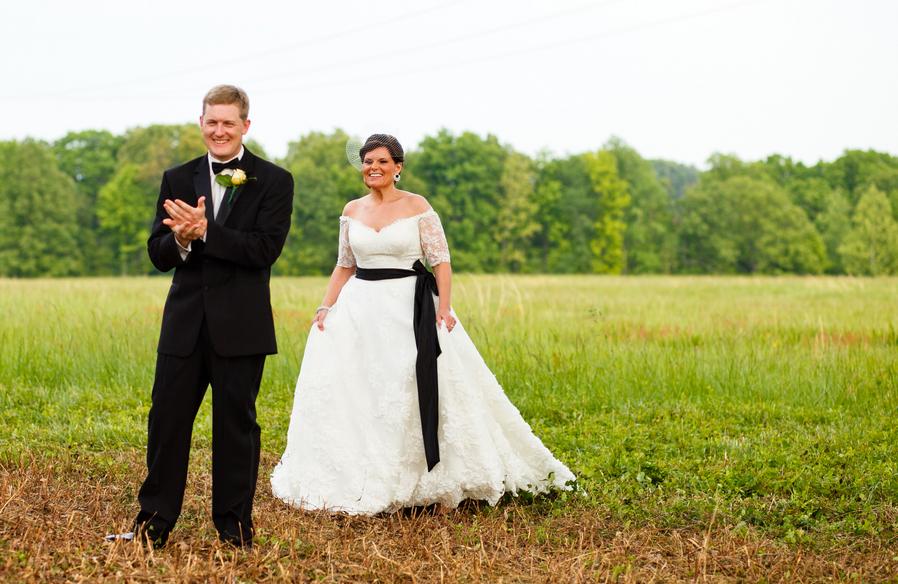 Today's we're sharing a classic Nashville affair from Jonathon Campbell Photography.  Bride Keesha stunned in her off-the-shoulder gown (that I just love!) as she wed her college sweetheart on her daddy's farm.  The couple chose an elegant yellow color palette that they complimented with a beautiful white and black print.