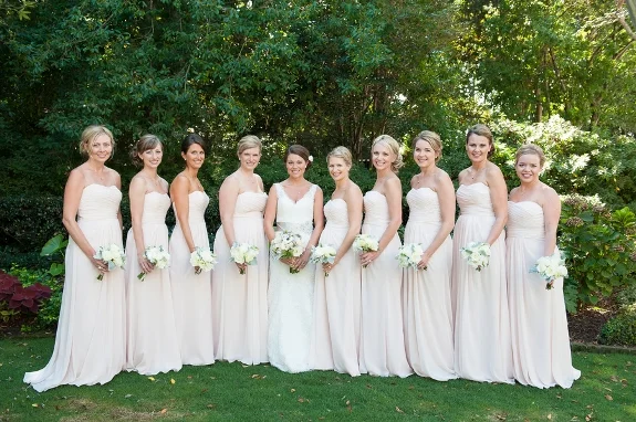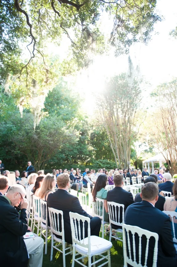 Photographer: Jennings King Photography / Event Planner: The Burlap Elephant (Katie Poole) / Florals: Sara Grimshaw Designs / Venue: Governor Thomas Bennett House / Ceremony music: Clelia Reardon / Cakes: Wildflour Pastry / Caterer: Newton Farms / Officiant: Doug Farmer: Your Charleston Wedding Officiant / Gown: Lillian West from Weddings 826 (Chicago) / Bridal Accessories: Kate Spade / Bridesmaid Dresses: Forever Yours from Bridal Informal (Cincinnati, OH) / Groom & Groomsmen attire: Berlins; Ties: Vineyard Vines / Makeup artist: Bellelina / Hair: Serendipity / Videography: DreamPop Media / Stationery: A. Fitterer Designs
